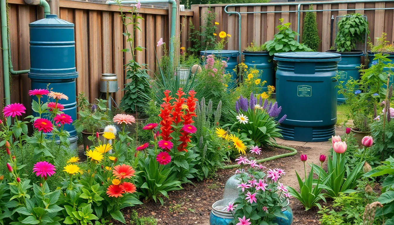 Water conservation methods ensure ample resources while employing responsible gardening practices. Installing rain barrels captures runoff for future irrigation. Utilizing drip irrigation systems delivers water directly to plant roots, minimizing waste. Mulching around plants limits evaporation and regulates soil temperature. Planting drought-resistant species conserves water while maintaining garden aesthetics. Grouping plants with similar water needs maximizes efficiency in watering routines.